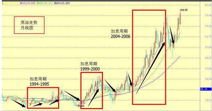 有市场人士从前三次的美元加息周期中,观察铜,黄金,原油三个品种的走势可以得出以下结论。